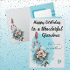 ¡Celebra tu abuela de uno en millón con esta impresionante tarjeta de cumpleaños floral! Con flores vibrantes, es la manera perfecta de alegrar su día especial. El diseño alegre es tan cálido y encantador como ella, y hay mucho espacio para personalizarlo con tus sentidos deseos de cumpleaños. Ya sea "¡Feliz cumpleaños a la más maravillosa abuela!" o un dulce "¡Eres uno en un millón!" —esta tarjeta seguramente la hará sonreír. ¡Una forma hermosa y reflexiva de mostrar lo mucho que significa para ti! Gris/Azul