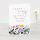 Sencilla y bonito, esta carta de cumpleaños con flores silvestres acuáticas está decorada en el interior y en el exterior con flores silvestres. Puede personalizar la parte delantera y el mensaje interior. La elegante tipografía femenina en el frente actualmente lee Feliz cumpleaños a un Maravilloso Amigo y puedes editar a tu Amigo a la par (por ejemplo, profesor, nuera, padrastro, primo, etc)