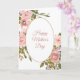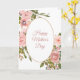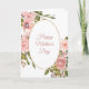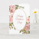 Imágenes de rosa rosada y hojas verdes rodean un marco ovalado con delgado borde dorado en la parte frontal de esta tarjeta del Día de la Madre. El texto personalizado aparece en rosa polvoriento coincidente en el interior del marco ovalado. Las imágenes y el texto están colocados sobre un fondo blanco. El interior izquierdo de la tarjeta es de color rosa coincidente sólido, con el texto personalizado en verde y rosa en el lado derecho. Fácil de personalizar, así que haz que diga lo que te gustaría, o deja el sentimiento como está.