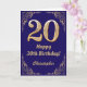 Marco Purpurina azul y dorado de la marina de cumpleaños 20. Para una mayor personalización, haga clic en el botón "Personalizar" y utilice nuestra herramienta de diseño para modificar esta plantilla.