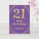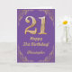 Tarjeta Marco Purpurina morado y dorado de cumpleaños 21