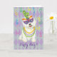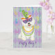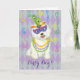 Cute West Highland White Terrier, vestido con máscaras de plumas festivas y cuentas, listo para divertirse en el Mardi Gras o en cualquier otro momento. Excelente regalo para usted y su familia y amigos amantes de Westie.