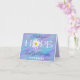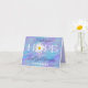 Esta alegre tarjeta religiosa tiene una escritura personalizable del Libro del Apocalipsis 19:6 que dice: "¡Aleluya! Porque nuestro Señor Dios Todopoderoso reina". Hay un patrón de gradientes ondulados a rayas en colores pastel con la palabra ESPERANZA en blanco con una cabeza de flor de margarita Shasta blanca y amarilla en lugar de la "O". Puedes mostrar tu fuerte fe cristiana en cada tarjeta que envíes, especialmente en Pascua. Perfecta para un pastor o cualquier persona con fe en Cristo. El interior de la tarjeta es de color púrpura claro con letras moradas oscuras para tu mensaje personalizado. Puedes seleccionar la tarjeta de tamaño 5x7 si deseas algo más grande. El texto de la parte frontal también es personalizable.