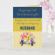 Tarjeta de saludo del primer aniversario del marido. Celebra un año de amor con esta adorable tarjeta de aniversario para tu esposo. Estos lindos pájaros están rodeados de corazones amorosos. Adentro, personalizarlo con tu propio mensaje dulce. Es la manera perfecta de mostrarle a tu marido que él es el amor de tu vida. Esquema de color: oro / azul
