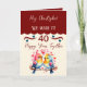 Celebra 40 años felices junto con esta dulce tarjeta de aniversario de boda de rubí para tu asombroso esposo! Con dos adorables pájaros adorables uno al lado del otro, este encantador diseño captura la alegría de un amor que ha resistido la prueba del tiempo. Con el sincero mensaje "40 años felices juntos" en el frente, es perfecto para compartir una sonrisa y un recuerdo en tu día especial. Ya sea que estés recordando el pasado o soñando con el futuro, esta linda tarjeta de aniversario es una manera encantadora de decir "Soy tan afortunado de tenerte como mi esposo" después de todos estos años. ¡Un recuerdo perfecto para tu 40 aniversario! Maroon / Azul