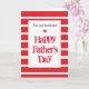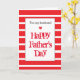 Una tarjeta roja moderna del Día del Padre para el marido. Tiene un fondo rojo a rayas en la parte delantera, junto con un pequeño corazón rojo. En el interior de esta moderna tarjeta del Día del Padre Feliz se lee un mensaje del Día del Padre, que puedes personalizar fácilmente si quieres. La parte trasera está decorada con rayas y el corazón rojo, donde podrás personalizar el año. Esto le haría un gran favor.