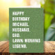 Haz especial el cumpleaños de tu ser querido con esta tarjeta de saludo humorística y de personalizable. El diseño presenta una imagen de césped verde y exuberante, que representa un césped bien cuidado, y una tipografía blanca audaz que se puede personalizar. La parte delantera de la tarjeta declara orgullosamente 'Cumpleaños feliz [Nombre personalizado]. Esposo. Papá. Leyenda de labranza de césped'. Simplemente reemplace el texto de la plantilla con el nombre del destinatario y personalizar con sus propias palabras para crear un mensaje verdaderamente único y personalizado. Dentro de la tarjeta, el saludo también se puede editar para reflejar tu toque personal. El mensaje preescrito dice 'Eres un 'corte' por encima del resto. Cumpleaños. Amor de [Nombre] xxx.' Añade tu propio y sincero mensaje para transmitir tus cálidos deseos y amor. Esta tarjeta es perfecta para todo esposo y padre que se enorgullece de mantener y cuidar la hierba o el césped, ya sea por amor o como parte de un negocio de paisajismo o siembra de hierba. Es una manera juguetona y reflexiva de celebrar su día especial. Regale el regalo de la risa y el aprecio con esta "Tarjeta de cumpleaños de la leyenda de la mata de yegua de nombre de papá del marido". ¡personalizar, personalice y haga que su cumpleaños sea verdaderamente memorable!"