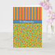 Una tarjeta de cumpleaños de Personalizado de moda, Front October Birthday Card para personalizar, con franjas de colores vivos en escarlata, Naranja, amarillo, azul y verde, en equipo con un patrón floral de marigoles a juego. Parte de la colección "Marigold Medley" de Posh & Painterly.
