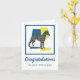 Silhouette de perro de grisú italiano con un patrón de líneas de rejilla azul y negro amarillo moderno. Felicidades por tu nuevo cachorro afuera y el mensaje divertido dentro puede cambiarse a lo que quieras.