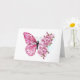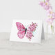 Arreglo floral de mariposa rosa con flores japonesas de cerezo rosadas sobre fondo blanco.