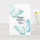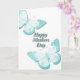 Una mariposa en la parte superior e inferior de la imagen con el mensaje “Feliz día de las madres” en el medio, todo en azul turquesa con fondo blanco por martinspixs.
