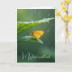 Tarjeta Mariposa simpática en una hoja verde en lluvia