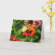 Fotografía de la naturaleza, de una mariposa amarilla alimentándose con flores, adorna esta tarjeta de pensamiento.