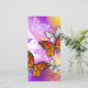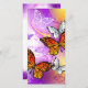 Naranja, mariposas monarcas detalladas sobre la luz, púrpura, pintoresco fondo pintado.