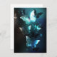 Mariposas brillantes nocturnas de menta sobre fondo abstracto negro.
