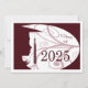 Una silueta de una joven en su gorra y vestido. Los diseños florales se utilizan en segundo plano.