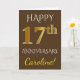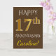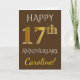 Tarjeta Marrón, Dorado Falso 17º Aniversario de Boda + Nom