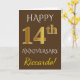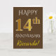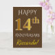 Tarjeta Marrón, Falso Oro 14º Aniversario de Boda + Nombre