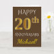 Tarjeta Marrón, Falso Oro 20 Aniversario de Boda + Nombre