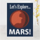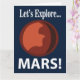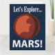 Mars Let's Explore Mars Card diseño original de Nisha Prabhu. ¡Explore Marte con nuestra tarjeta de cosmos! Perfecto para los aficionados al espacio o los soñadores de su vida, este diseño vibrante capta la belleza impresionante del Marte. Ya sea por un cumpleaños, una ocasión especial, o solamente una nota para decir "estoy pensando en ti", esta carta seguramente encenderá la imaginación y se preguntará. Hazlo verdaderamente único añadiendo tu mensaje personal dentro. ¡Envíe un pedazo del universo a sus seres queridos e inspire a sus seres queridos a alcanzar las estrellas!