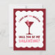 Pregúntale a tu San Valentín con este juego de modas con la carta del Día de San Valentín. Con un vibrante diseño burdeos y rosa rubí con la frase "Tengo una pregunta de la TINI", esta carta combina el moderno ingenio con un capricho. Las vidrieras martini decoradas con guirnaldas en forma de corazón aportan un toque de romanticismo y sofisticación. Perfecto para quien ame el juego de palabras inteligente y la estética contemporánea de San Valentín, esta carta es una manera única de plantear la pregunta: "¿Serás mi San Valentín?"