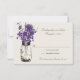 Tarjeta RSVP para una ducha de novia de estilo rústico o tal vez te guste Mason Jars! Viejo mason Jar vintage colgado en un anzuelo con flores silvestres de campo. Un maravilloso color de fondo crema con el dibujo negro de un Mason Jar lleno de flores silvestres de campo moradas (2627). Si tiene alguna pregunta sobre este diseño o desea cambiar de color, por favor envíeme un correo electrónico a paula@labellarue.com