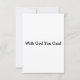 Esta tarjeta de saludo presenta un tipo de letra cursi y agudo con letras negras que muestran el versículo de la biblia "Matthew 11:27 KJV" sobre una imagen de fondo mostrando hierba verde con hojas de palmera más tema de color verde y bajo el cielo claro. Este verso hace referencia al capítulo 11 del Libro de Mateo que muestra el 27° versículo de esta escritura biblia, el tema de la cita de la Biblia del Rey James con las palabras "¡Con Dios puedes!" en la parte posterior. Fabricado con impresión a color de alta calidad en papel mate de 3,5" x 5" (retrato) o de 5" x 3,5" (paisaje) hecho e impreso en EE.UU.