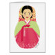 Esta tarjeta muestra mi matriyoshka coreana (aka- babushka, muñeca anidante, muñeca rusa, muñeca apilada), un dibujo original de mi parte, Amy Perrotti. Mis dibujos de matryoshka celebran a mujeres y chicas de todas las etnias y nacionalidades.
