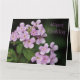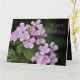 Elegante tarjeta de cumpleaños alegre con motivos de mauve floral sobre el jardín. Personalice el texto para que se ajuste a cualquier ocasión especial. El texto también es extraíble. Las imágenes de las flores moradas se pueden cambiar a tus fotografías personales.