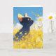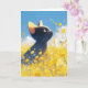 Esta encantadora tarjeta de saludo cuenta con un curioso gato negro que mira a un campo vibrante de flores amarillas y azules contra un cielo azul claro. El ilustracion combina la inocencia lúdica de un gatito con la belleza de la naturaleza, capturando el espíritu de un prado soleado y florido. Perfecto para los amantes de los gatos, los amantes de la naturaleza y todo aquel que aprecie el arte con un toque mágico, esta tarjeta es la elección ideal para cumpleaños, notas de agradecimiento o simplemente para llevar una sonrisa al día de alguien. Los colores vivos y el ambiente acogedor crean una carta de bienvenida alegre y edificante para cualquier ocasión.