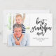 Esta moderna tarjeta del Día del Padre incluye la frase "mejor abuelo jamás" en un guión escrito a mano en negro con el mensaje de su personalizado debajo. Personaliza tu foto favorita. La parte posterior muestra corazones negros sobre un fondo blanco.