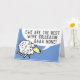 Divertido ilustracion de una oveja en una tarjeta con el mensaje en la parte delantera que dice "¡Somos el mejor compañero de trabajo, ninguno!" Un juego de palabras sobre el embudo de una oveja. Una gran idea para elogiar a un profesional. Personaliza el interior con tu propio mensaje.