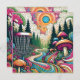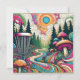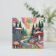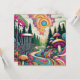 Te deseo el mejor cumpleaños por par. Tarjeta de cumpleaños temática de golf en disco para ella. Un único y colorido campo de golf en un campo de setas retro, pinos, nubes turbulentas coloridas, sol en colores vintage como azul, verde, rosa y naranja.