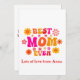 Esta es una retro tarjeta de saludo de Día de la Madre groovy de los años 70 que presenta el mejor texto fresco de la mejor madre jamás pintado, con flores hippie en naranja, rosa, rojo y amarillo. Es un gran regalo para tu madre por el Día de la Madre o tu cumpleaños madre.