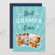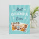 Celebra un querido Grampa este Día del Padre con este genial diseño de tarjeta fotográfica que incluye dos fotos favoritas de sus nietos con la frase "mejor Grampa de todos los tiempos" con letras blancas y azules en un fondo acuático. Agregue un mensaje preimpreso del personalizado al reverso.