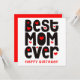 Un mensaje especial para tu madre en su tarjeta de cumpleaños con la mejor mamá de todos en una tipografía negra de moda con motivos del corazón rojo en un fondo blanco. En la parte trasera puedes personalizar tu propio saludo así como el Feliz Cumpleaños en la parte delantera.