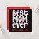 Un mensaje especial para tu madre en su tarjeta de cumpleaños con la mejor mamá de todos en una gran tipografía honesta y blanca con motivos del corazón rojo en un fondo negro clásico. En la parte trasera puedes personalizar tu propio saludo así como el Feliz Cumpleaños en la parte delantera.