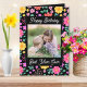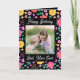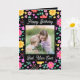 Esta tarjeta de felicitación de cumpleaños cuenta con vibrantes flores dibujadas a mano y follaje sobre un fondo negro. Personaliza las fotos en el frente y dentro de las tarjetas, así como tu mensaje especial de cumpleaños a mamá.