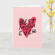 ¡Por la mejor mamá de todos los tiempos! Moderna y linda tarjeta del día de la madre con el corazón rojo y la mano negra con letras para el feliz día de la madre con fondo rosado. ¡Pon un mensaje personalizado dentro de la tarjeta si quieres!