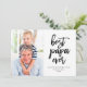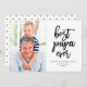 Esta moderna tarjeta del Día del Padre incluye la frase "mejor papá de todos" en un guión escrito a mano en negro con el mensaje de su personalizado debajo. Personaliza tu foto favorita. La parte posterior muestra corazones negros sobre un fondo blanco.