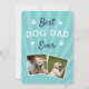 Celebra este Día del Padre a un querido papá de perro con este diseño de tarjeta de saludo con fotos que incluye dos fotos favoritas de su bebé con la frase "mejor papá de perro" con letras blancas y azules. Agregue un mensaje preimpreso del personalizado al reverso.