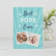 Celebre este Día del Padre con un bonito diseño de tarjeta fotográfica que incluye dos fotos favoritas de sus nietos con la frase "mejores papas de la historia" con letras blancas y azules en un fondo acuático. Agregue un mensaje preimpreso del personalizado al reverso.