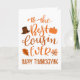 Tipografía simple pero audaz en tonos naranjas para desear a tu mejor primo un feliz Día de Acción de Gracias. © Ness Nordberg