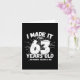 Este divertido diseño de cumpleaños número 63 hace un gran chiste de humor sarcástico o regalo de novedad para un tema de cumpleaños de 63 años o una fiesta sorpresa de cumpleaños número 63. Funcionalidades como "Lo hice a los 63 años... nada me asusta", meme de cumpleaños número 63 que tendrá muchas risas entre la familia, amigos, invitados fiestas y el hombre o chica de cumpleaños también.