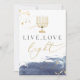 Esta tarjeta de saludo de Hanukkah incluye una mancha de color azul marino, manchas de Relieve metalizado dorado, una menorah de color dorado y el dicho "luz de amor viva" en honor al festival de las luces. Edite fácilmente *most* frases y actualice las fotografías para actualizar a tus amigos y familias esta temporada de vacaciones.