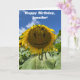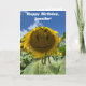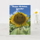 Esta tarjeta de saludo muestra una foto de un girasol con una cara sonriente. El mensaje en la parte delantera y el mensaje en el interior de esta tarjeta están listos para ser personalizados con su propio texto.