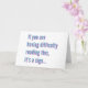 Se da a las palabras el efecto de texto anaglyph que hace difícil de leer, así que no lo mires tan fuerte. El mensaje en la parte delantera dice "Si tienes dificultades para leer esto, es un signo..." mientras que el mensaje en el interior dice "... Necesitas gafas. ¡Feliz cumpleaños número 30!" Leyenda divertida para insinuar que el niño o chica de cumpleaños se está haciendo viejo. Diseño de Rusty Doodle.