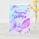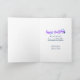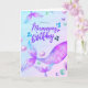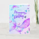 Mermazing Birthday card que usted puede personalizar con un nombre y un saludo opcional dentro. La parte delantera está escrita con "deseándote un cumpleaños mermador" en una tipografía fresca de sirenas. Fantástico diseño de sirena con colas de sirena, salpicaduras y burbujas oceánicas en tonos acuáticos de púrpura rosa y azul turquesa.