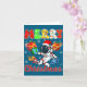Tarjeta Merry Christmas Astronaut Santa Hat Snowflakes Tre