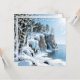 A pretty personalized Christmas card with an illustration of Door County in the wintertime. The pretty dune ledges covered in icicles and frozen blue ice, blue water of Lake Michigan hitting against the bluffs, Sun shining lighting up the sparkling snow and ice. And pretty Christmas lights twinkling in the trees on the bluffs. There is a winter poem on the back and you can add your names in the personalize area.